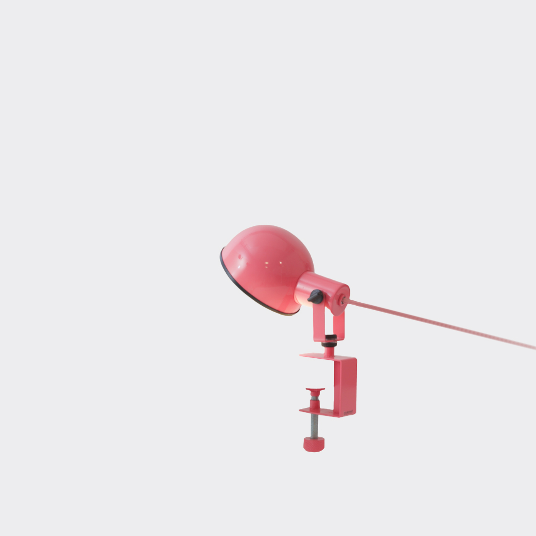 Abajur em metal pintado e com sistema de fixação em morsa.