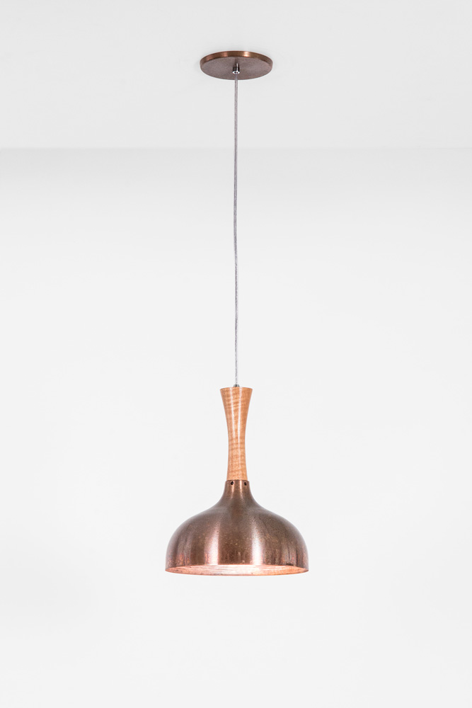 Pendente de cobre natural externo e interno. Madeira certificada cedro rosa.