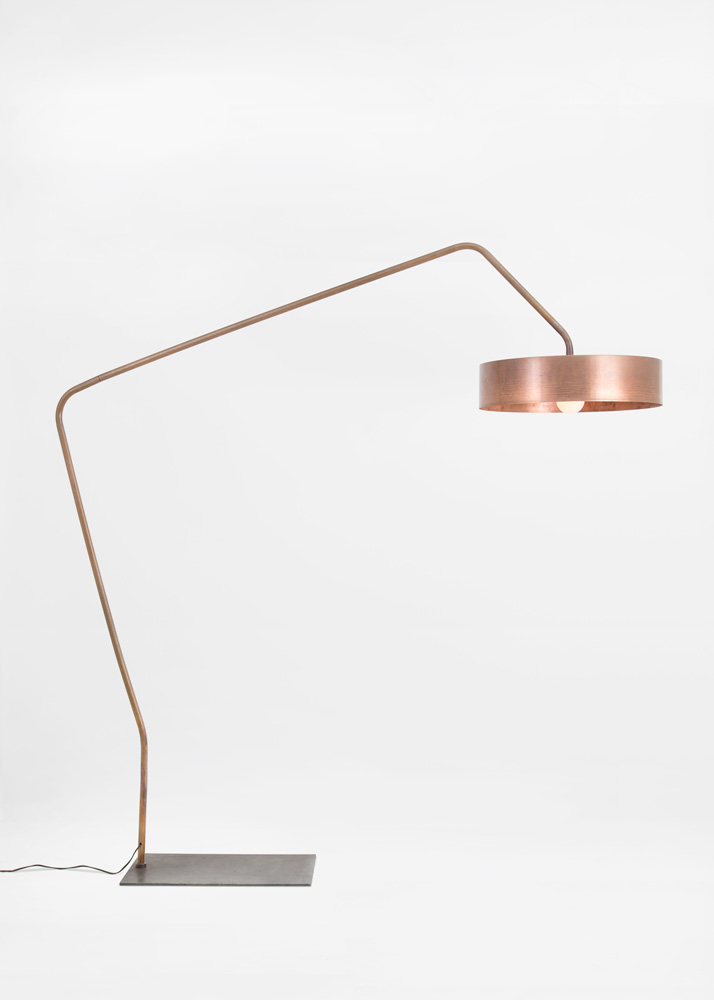 C807 - Haste de cobre natural, refletor em cobre natural e base de ferro.