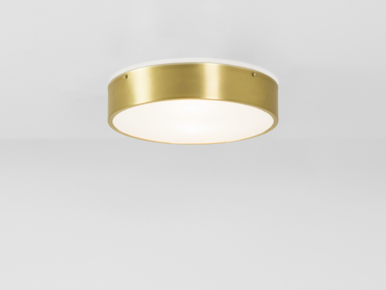 Plafom em latão escovado, natural ou oxidado, interno branco.