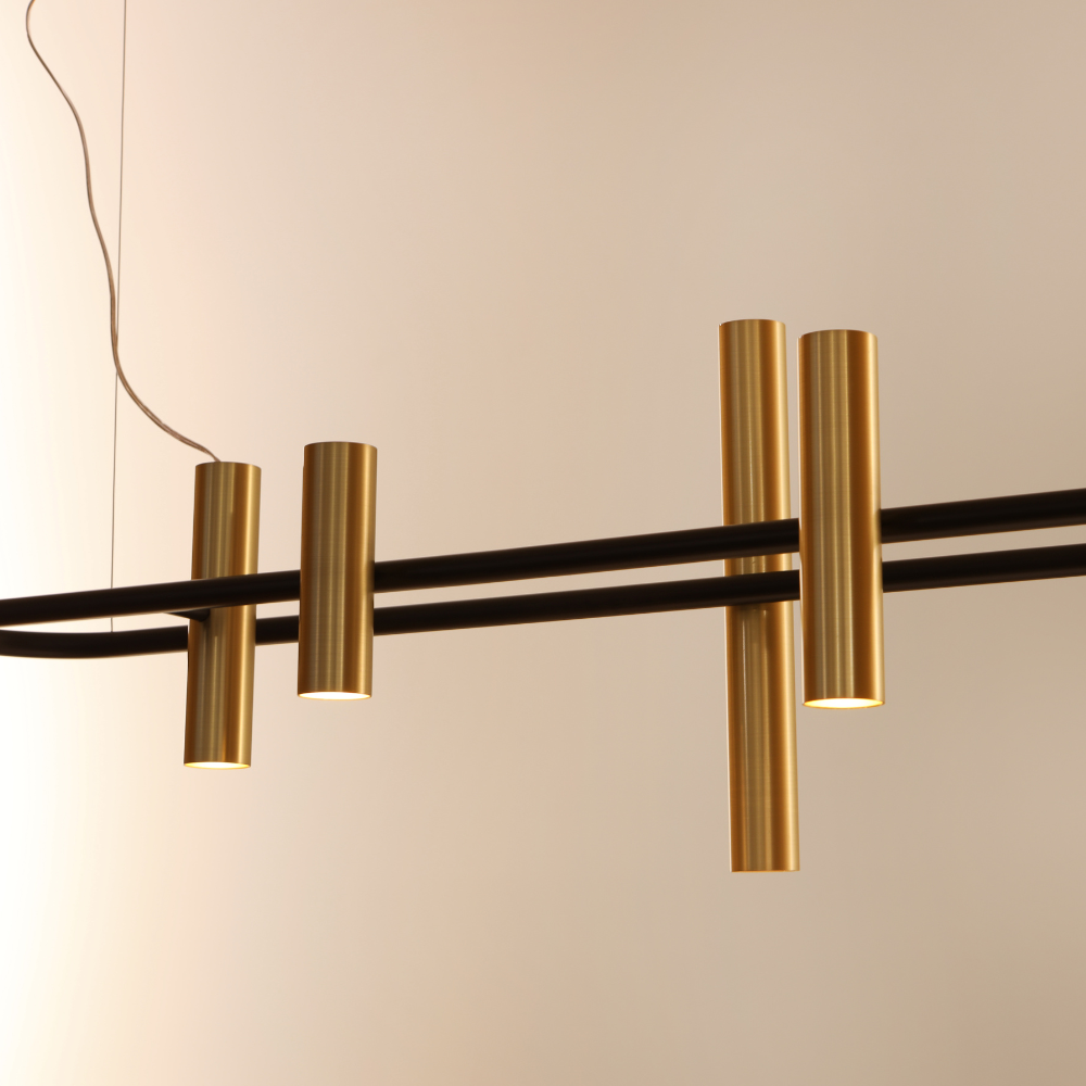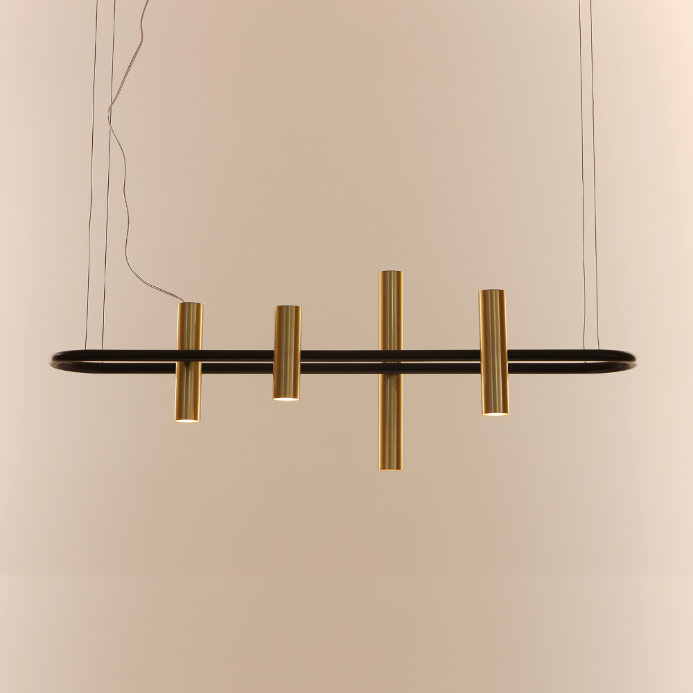 A coleção Órbita se inspira naquilo que é digno do céu, orbitando e flutuando na poética dança e movimentação dos planetas! A exuberância estética dos pendentes, com seus traços retos e cilíndricos, se encaixa em variados tipos de design de interiores, passeando por composições mais minimalistas, até as mais pomposas. Isso porque há, ainda, a possibilidade de variar a aparência das peças com os acabamentos, criando combinações, por exemplo, com a cor preta e detalhes em latão, ou então criando algo mais quente, com toques de madeira.