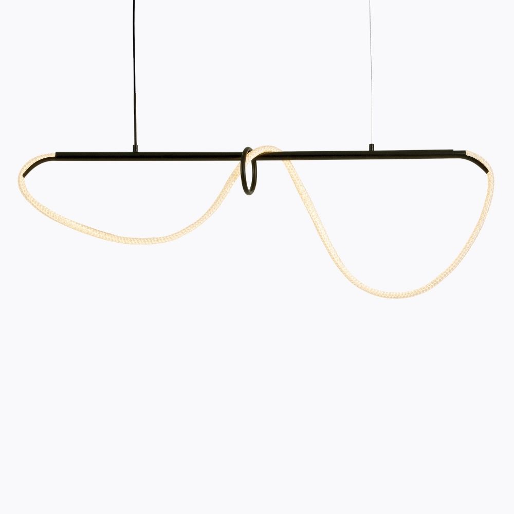 Pendente composto por haste, argola e corda iluminada com possibilidade de diferentes arranjos. Disponível em 3 tamanhos.