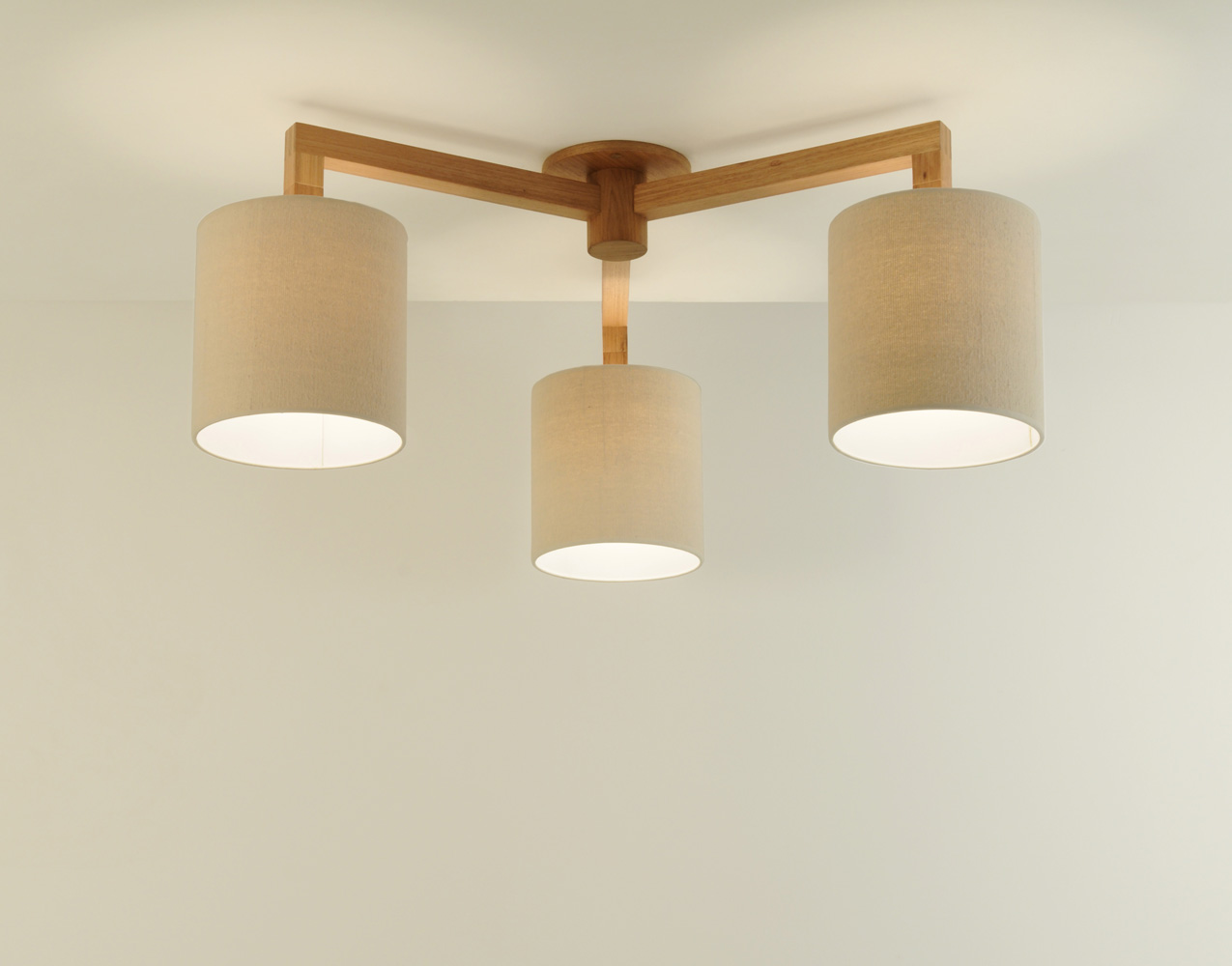 Plafom com estrutura de freijó e cúpulas em linho ou algodão.