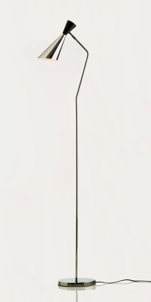 Foi inspirado em um abajur dos anos 50 e mantidas as linhas refinadas do original. Alterações como o acabamento conferiram ar mais leve e sofisticado.