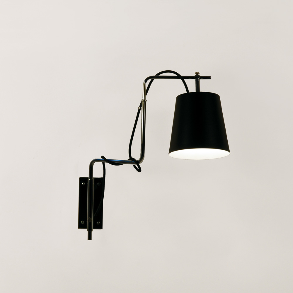 Estrutura de latão cromado. Copo de alumínio colorido. Cordão de força de tecido.